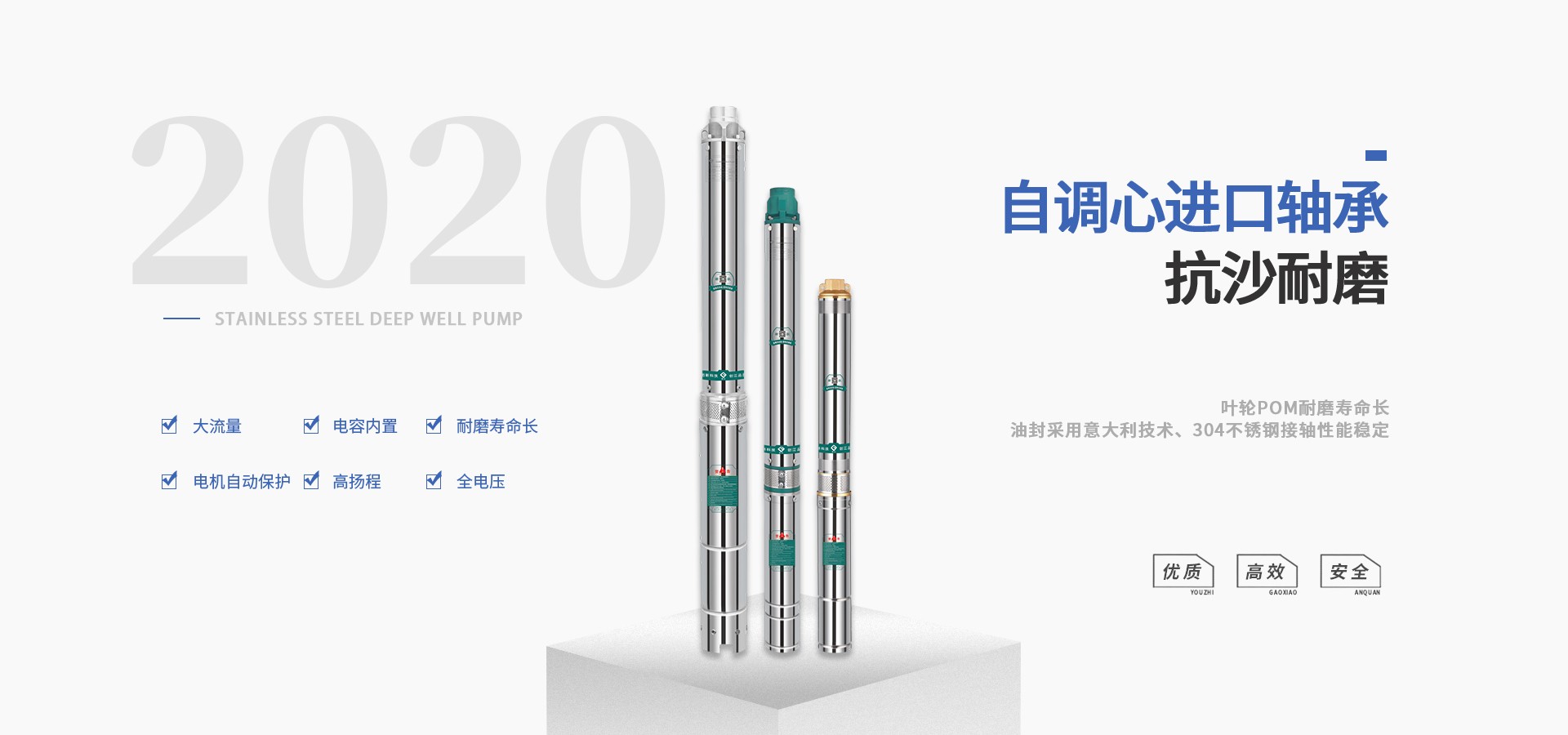 公司始終站在深井泵行業(yè)的前端位置,科研力量、產(chǎn)品和設備技術水平均達到國內優(yōu)質水平,公司始終堅持走科技興企、自主創(chuàng)新的企業(yè)發(fā)展之路,產(chǎn)品不斷推陳出新,可廣泛應用于農(nóng)業(yè)灌溉、生活用水、循環(huán)供暖、污水處理、市政供水、石油化工、冶金礦山等領域。